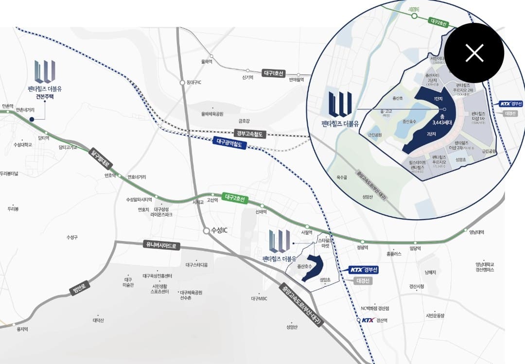 경산 펜타힐즈W는 경상북도 경산시 중산동 펜타힐즈 지구에 들어서는 초고층 주거단지로, 대구 생활권과 풍부한 생활 인프라를 동시에 누릴 수 있는 미래가치 높은 아파트로 주목받고 있습니다. 경산 펜타힐즈W는 대규모 주거단지와 함께 다양한 생활 편의시설이 계획되어 있어 경산 대표 랜드마크 주거단지로 기대를 모으고 있습니다.
